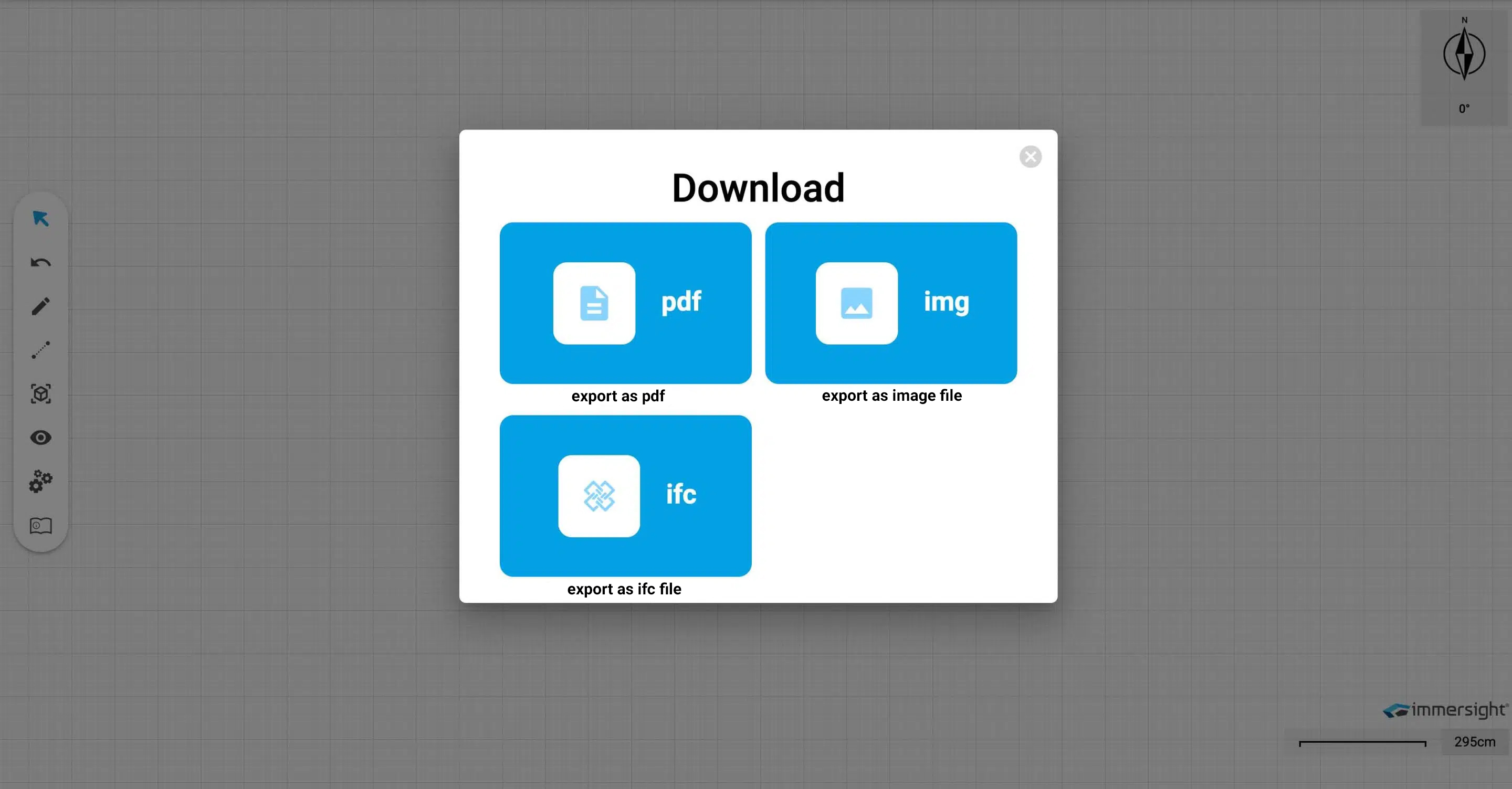 The completed 2D floor plan can be easily exported as PDF, .img, or IFC files.