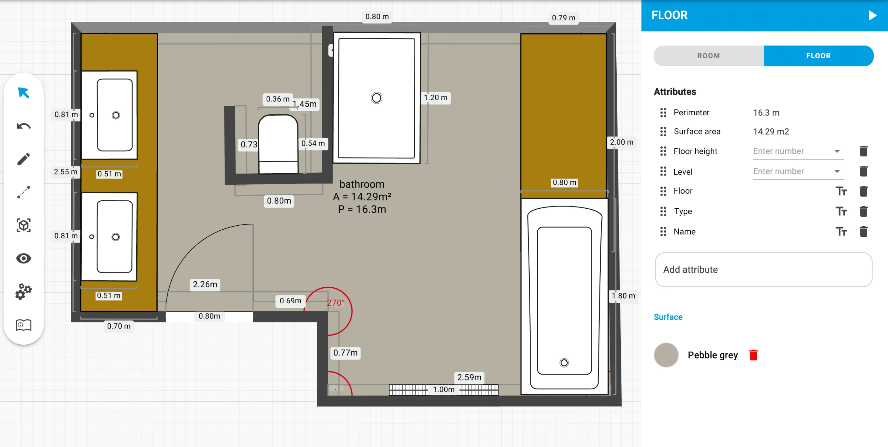 Do you need floor dimensions and want to quickly measure distances? It’s easy with the 2D floor plan planner – just measure from point A to point B with two clicks.